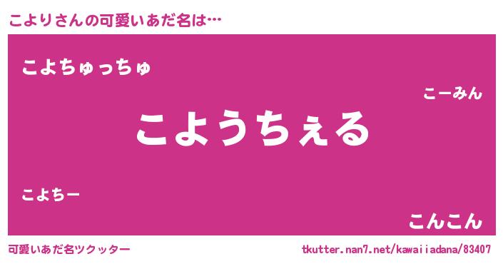 | 恥ずかしいあだ名 | 『コヨリデラックス』『プリティーこより』 |