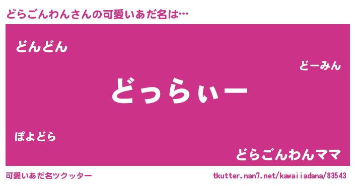 | 男性向けラノベタイトル風あだ名 | 『ダンジョンにどらごんわんを求めるのは間違っているだろうか』 |