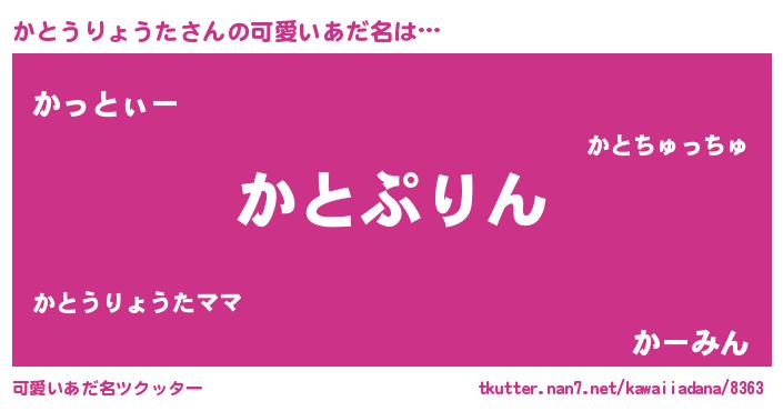 | 料理風あだ名 | 『かとうりょうたごはん』 |