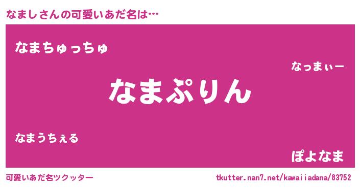 | 意味不明あだ名 | 『なめこ科なまし属』『自称なまし』 |