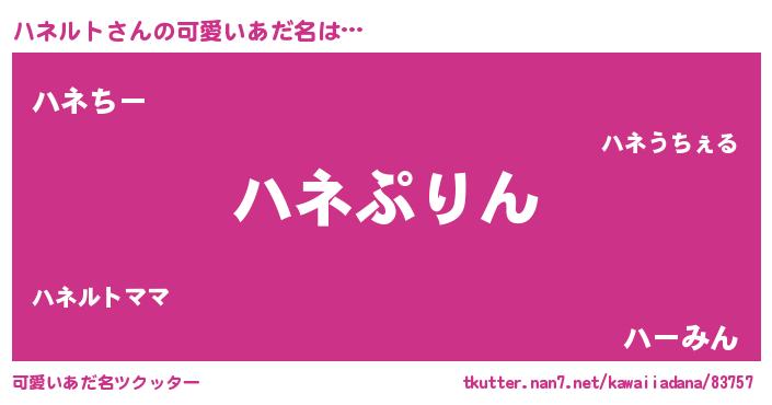 | 意味不明あだ名 | 『めかぶ科ハネルト属』『自称ハネルト』 |