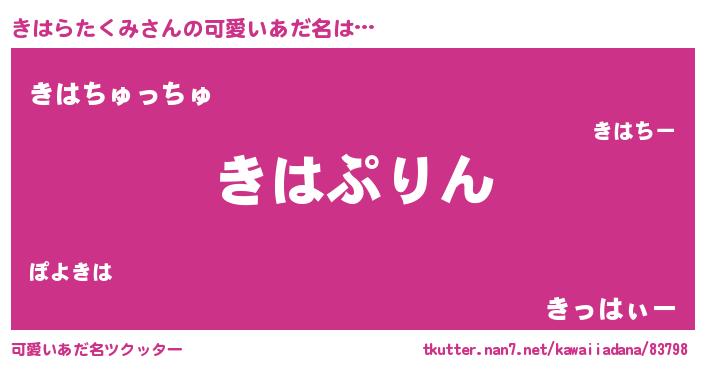 | ヘコむあだ名 | 『きは太郎』『豆乳』『きはにゅー』 |