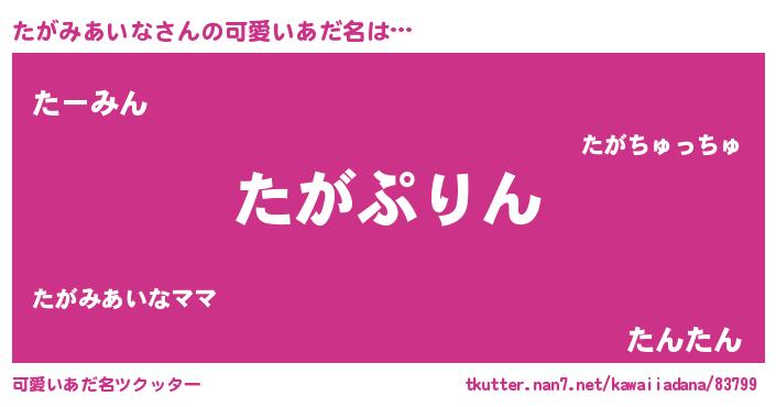 | ヘコむあだ名 | 『たがっふぃ~』『たがみあいな(苦笑)』 |