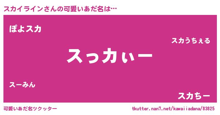 | 男性向けラノベタイトル風あだ名 | 『スカイラインの嫁は女の子じゃないと思った?』 |