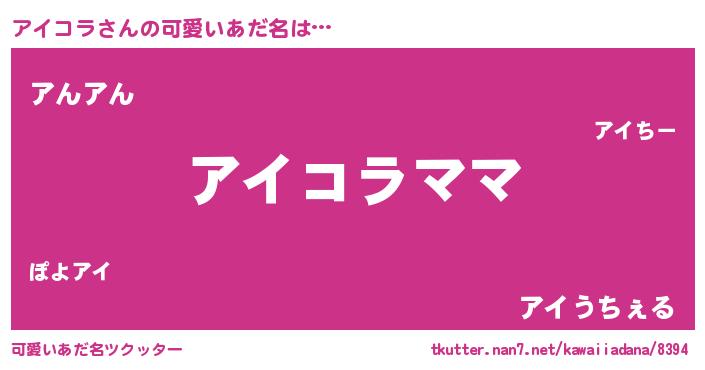 | 恥ずかしいあだ名 | 『アイちん』『プリティーアイコラ』 |