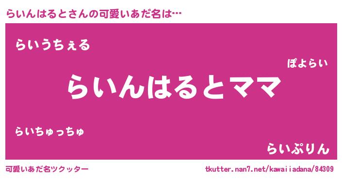 | 女子向けラノベタイトル風あだ名 | 『異世界で失敗しない100のらいんはると』 |