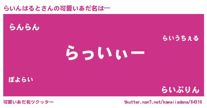 | 男性向けラノベタイトル風あだ名 | 『らいんはるとの嫁は女の子じゃないと思った?』 |