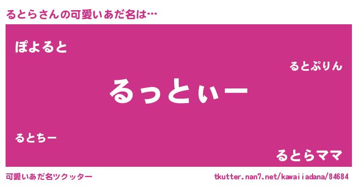 | ヘコむあだ名 | 『ると太郎』『るとら(笑)』 |