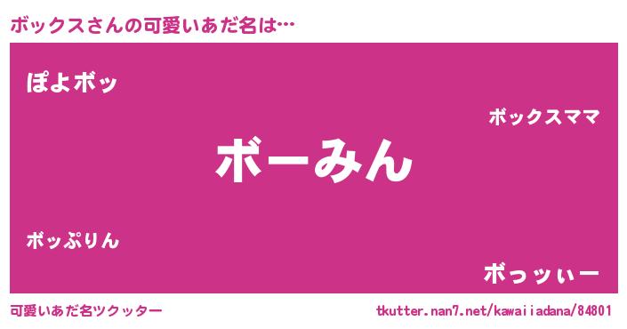 | 胡散臭い通販商品みたいなあだ名 | 『あなたにだけ特別に提供する世界で10本だけ現存している希少なブランデー…その名も「ボックス」』 |