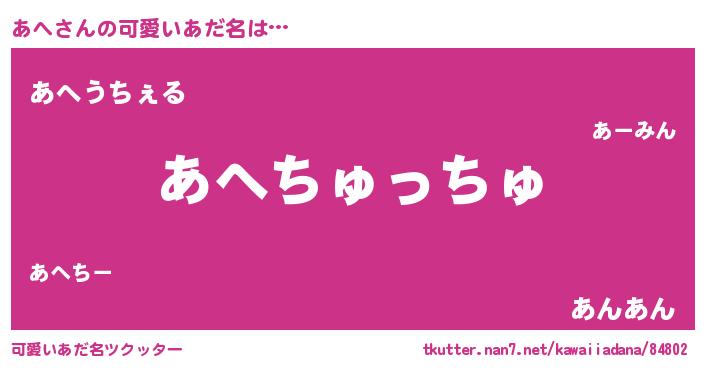 | ヒーロー風カッコイイあだ名 | 『慈愛の使者あへ』『最強戦士アヘ』 |