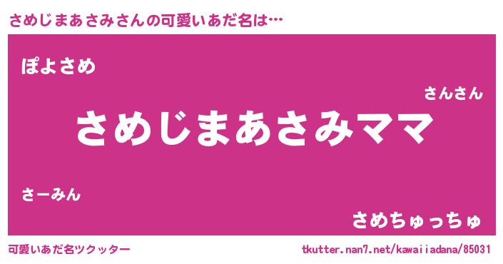 | 意味不明あだ名 | 『永久保存さめじまあさみ』 |