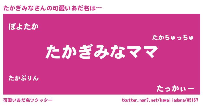 | ヘコむあだ名 | 『たかぎみな(遠い目)』『たかぷりん』 |