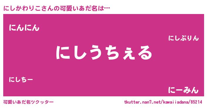 | 意味不明あだ名 | 『自称にしかわりこ』 |