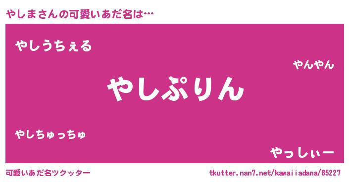 | ピコ太郎風あだ名 | 『ヤシ三郎』『ヤコ太郎』『ヤヤ太郎』 |