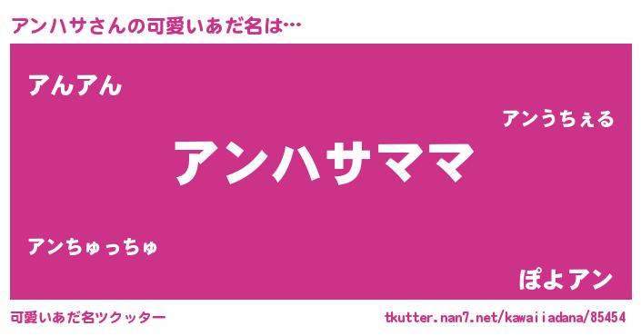 | 意味不明あだ名 | 『永久保存アンハサ』『ペロリンアンハサ』 |