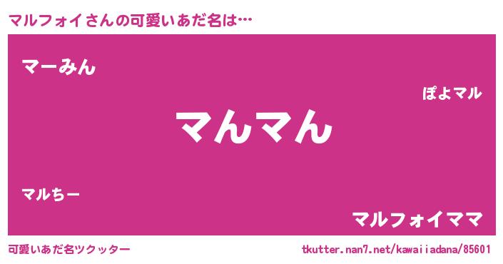 | ヘコむあだ名 | 『マルにー』『マルフォイ(笑)』 |