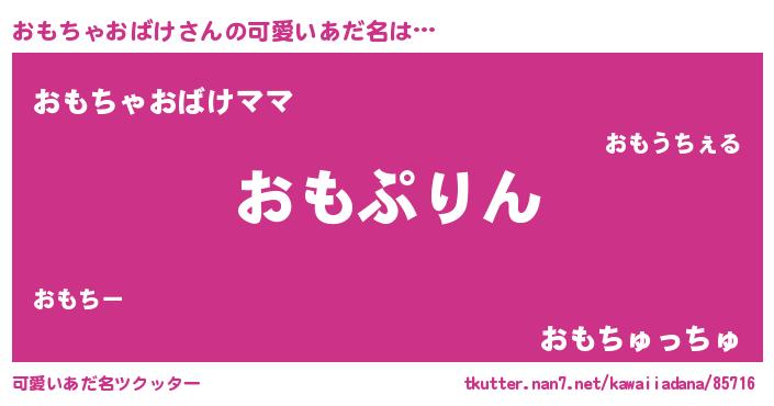 | 男性向けラノベタイトル風あだ名 | 『おもちゃおばけ~年齢イコール彼女いない歴の魔法使い~』 |