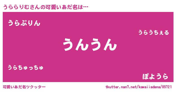 | 恥ずかしいあだ名 | 『プリティーうららりむ』『うらっちょ』 |