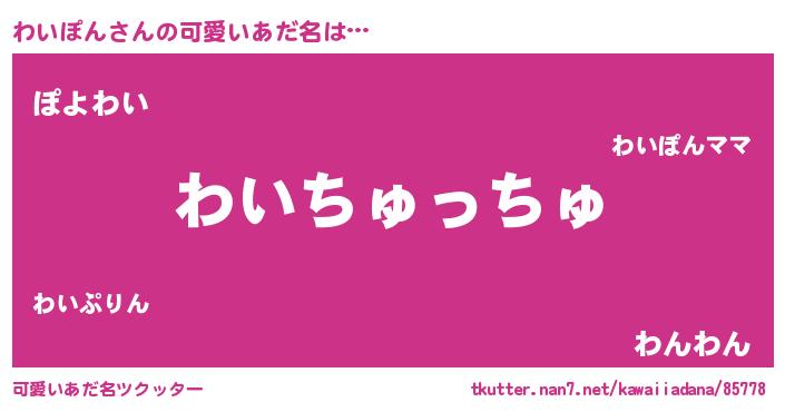 | 欧米人風あだ名 | 『アンジェラ・わいぽん』 |