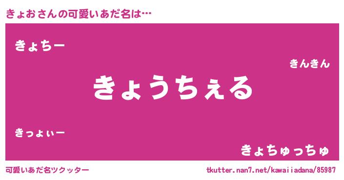 | 意味不明あだ名 | 『自称きょお』『きょおフォーエバー』 |