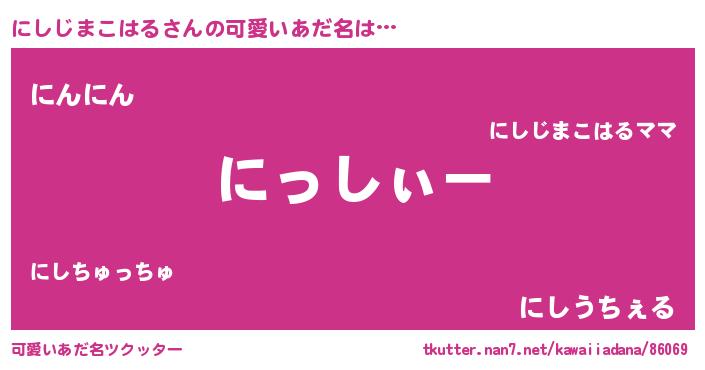 | 肩書あだ名 | 『にしじまこはるリーダー』 |