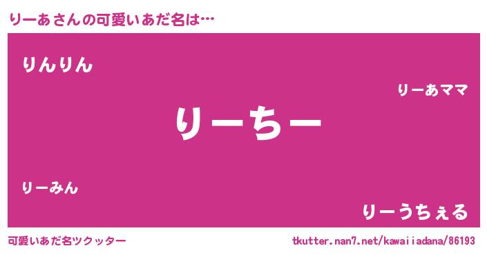 | 意味不明あだ名 | 『りーあフォーエバー』『ペロリンりーあ』 |