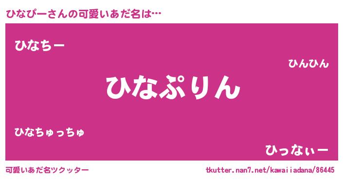 | 男性向けラノベタイトル風あだ名 | 『ヒナピースレイヤー』『ひなぴーの憂鬱』 |
