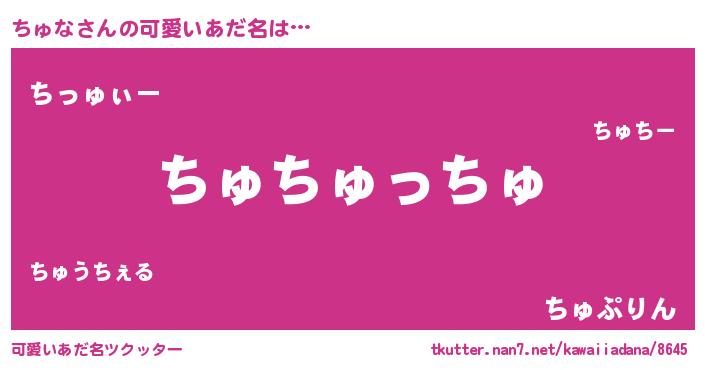 | ヒーロー風カッコイイあだ名 | 『慈愛の使者ちゅな』『黄金騎士チュ』 |