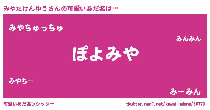 | ヒーロー風カッコイイあだ名 | 『仮面ミヤダー』『ネオミヤタケンユウ』 |