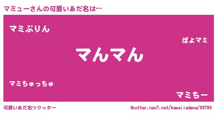 | ヘコむあだ名 | 『マミもー』『豆乳』『マミュー(笑)』 |