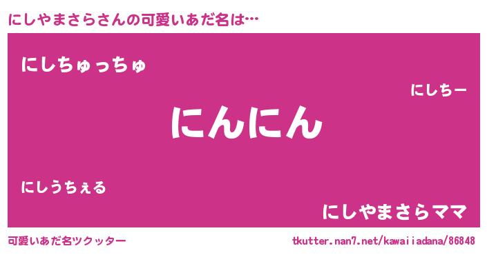 | ヘコむあだ名 | 『にしもー』『にしやまさら(遠い目)』 |