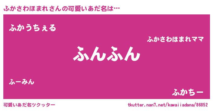| 恥ずかしいあだ名 | 『プリティーふかさわほまれ』『ふかちん』 |