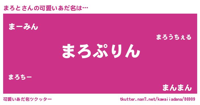| 男性向けラノベタイトル風あだ名 | 『まろと~年齢イコール彼女いない歴の魔法使い~』 |
