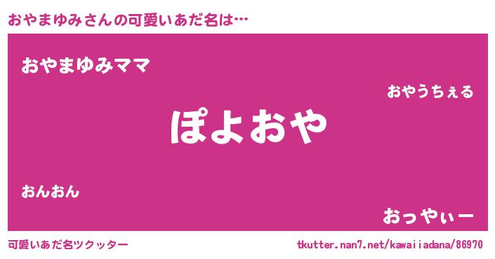 | ヒーロー風カッコイイあだ名 | 『仮面オヤダー』『ネオオヤマユミ』 |