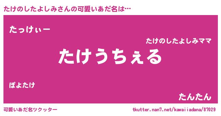 | ポケモン風あだ名 | 『タケセウス』『ヒタケノシタヨシミ』 |
