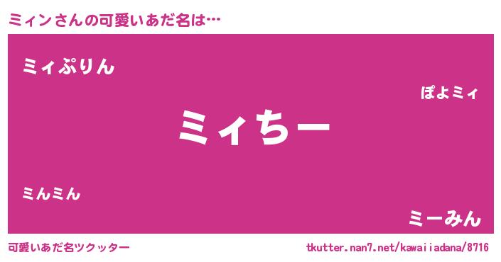 | 恥ずかしいあだ名 | 『ミィっちょ』『プリティーミィン』 |