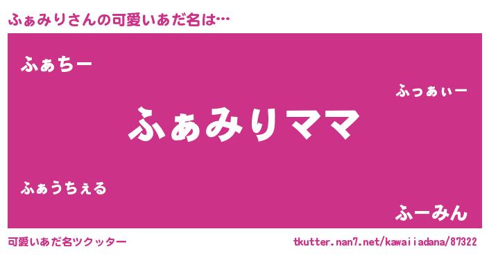 | 意味不明あだ名 | 『永久保存ふぁみり』『自称ふぁみり』 |
