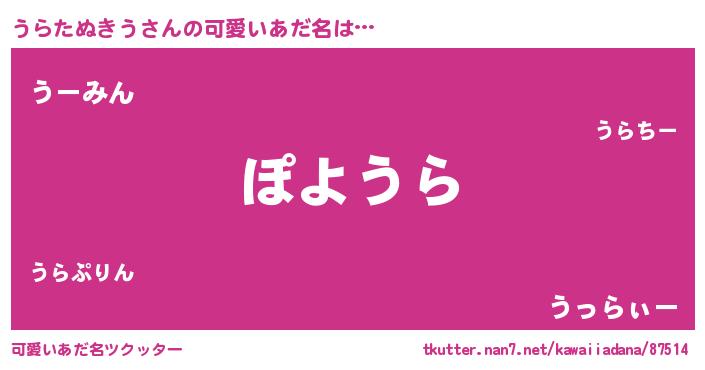 | 女子向けラノベタイトル風あだ名 | 『うらたぬきうが死なない童話 林檎のうらたぬきうの診療簿』 |