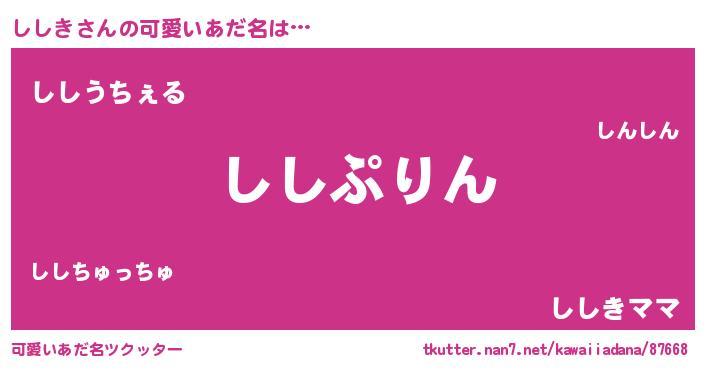 | ヘコむあだ名 | 『ししき(笑)』『ししっふぃ~』 |