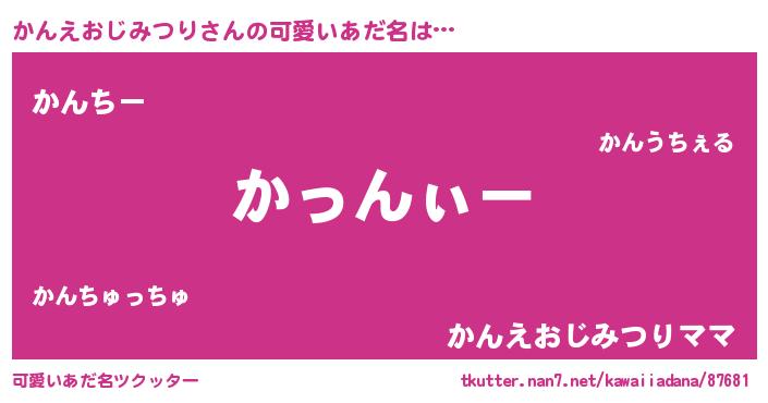 | 女子向けラノベタイトル風あだ名 | 『かんえおじみつりの卵を拾いまして』 |