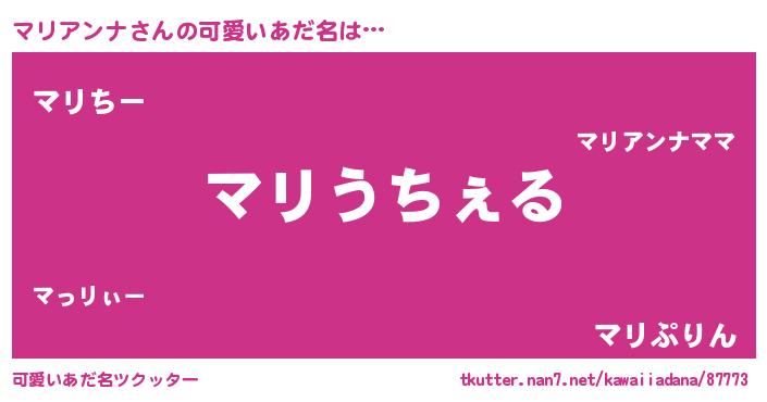 | 恥ずかしいあだ名 | 『マリアンナデラックス』『マリっちょ』 |