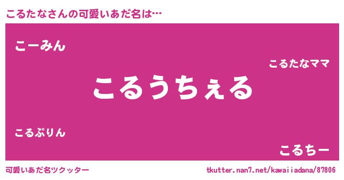 | ヘコむあだ名 | 『豆乳』『こるたな(笑)』『こるっ子』 |