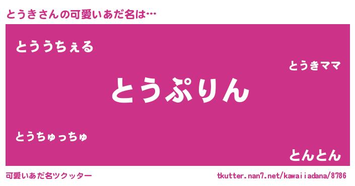 | ヒーロー風カッコイイあだ名 | 『最強戦士トウキ』『スーパートウキ』 |