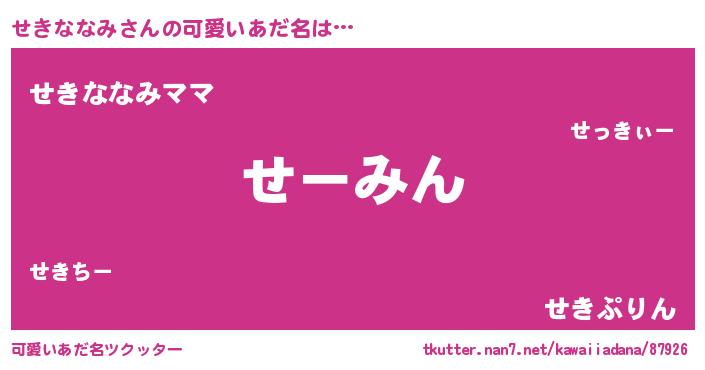 | 意味不明あだ名 | 『永久保存せきななみ』 |