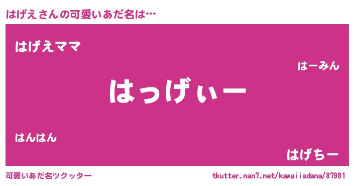 | 女子向けラノベタイトル風あだ名 | 『はげえは平凡を望む』『はげえの婚約者』 |
