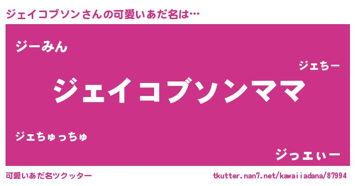 | 意味不明あだ名 | 『永久保存ジェイコブソン』 |