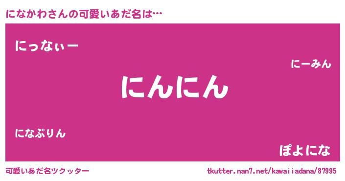 | 恥ずかしいあだ名 | 『プリティーになかわ』『ニナリンリン』 |