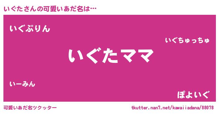 | 意味不明あだ名 | 『永久保存いぐた』『なめこ科いぐた属』 |
