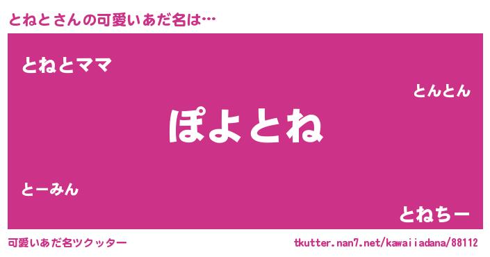 | ヘコむあだ名 | 『とねと(遠い目)』『レバニラ』 |