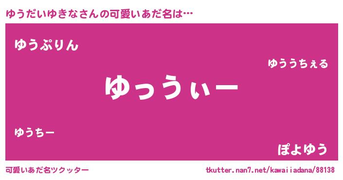 | 男性向けラノベタイトル風あだ名 | 『ゆうだいゆきなの嫁は女の子じゃないと思った?』 |